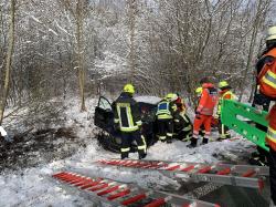 Beschreibung: Verkehrsunfall, Person eingeklemmt