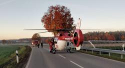 Info: Komplettsperre der B301, Person aus Fahrzeug befreit, Hubschrauberlandung abgesichert